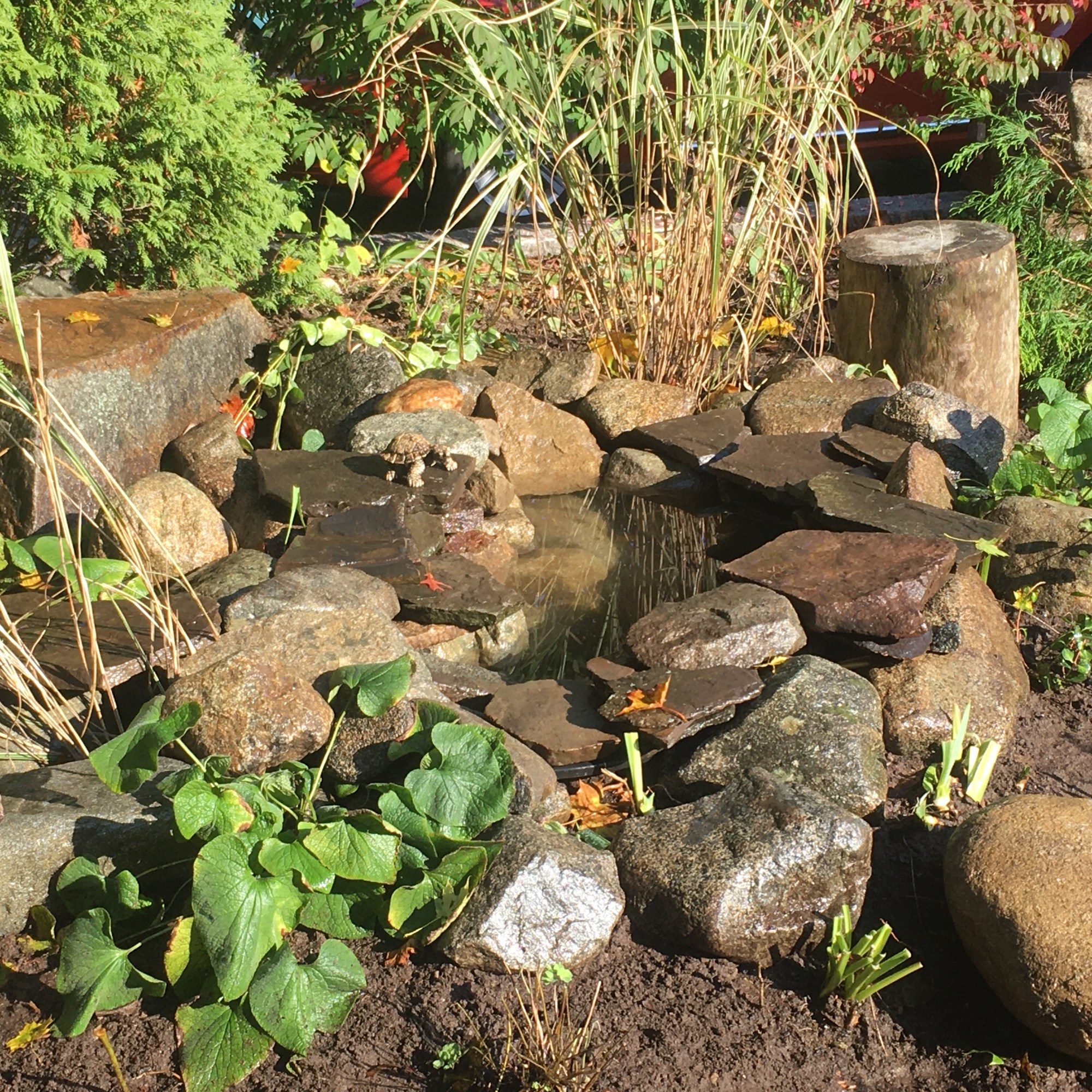 This small water feature is the focus of a native perennial planting that was granted the title of Monarch Butterfly Waystation.